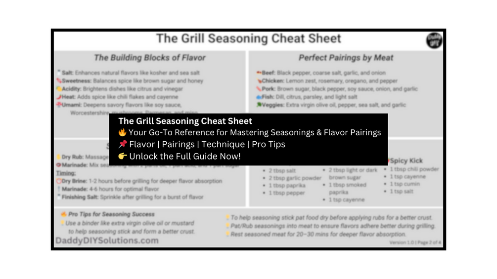 Take your grilling to the next level with The Grill Seasoning Cheat Sheet—the ultimate quick-reference guide for mastering flavors on the grill. Whether you’re grilling juicy steaks, tender chicken, flavorful pork, fresh fish, or vibrant veggies, this cheat sheet provides the perfect pairings, pro tips, and go-to spice mixes to enhance your cooking.